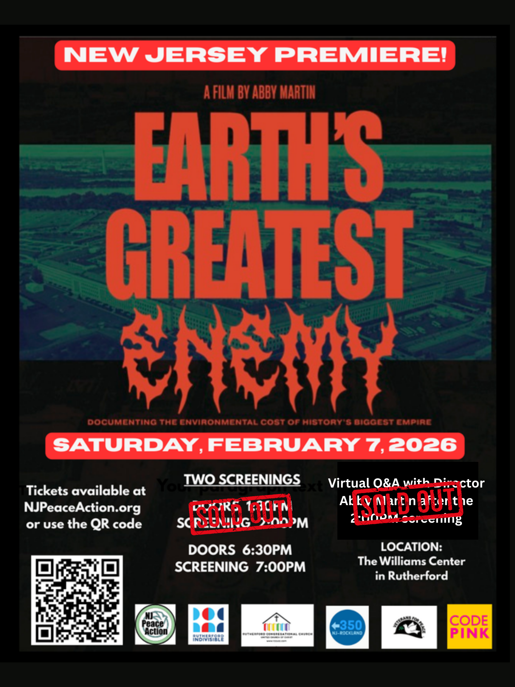 This event is co-sponsored by: Rutherford Indivisible NJ, the Rutherford Congregational Church, Veterans for Peace/Chapter 021 (Northern NJ), 350.org-NJRockland and CODEPINK NYC.